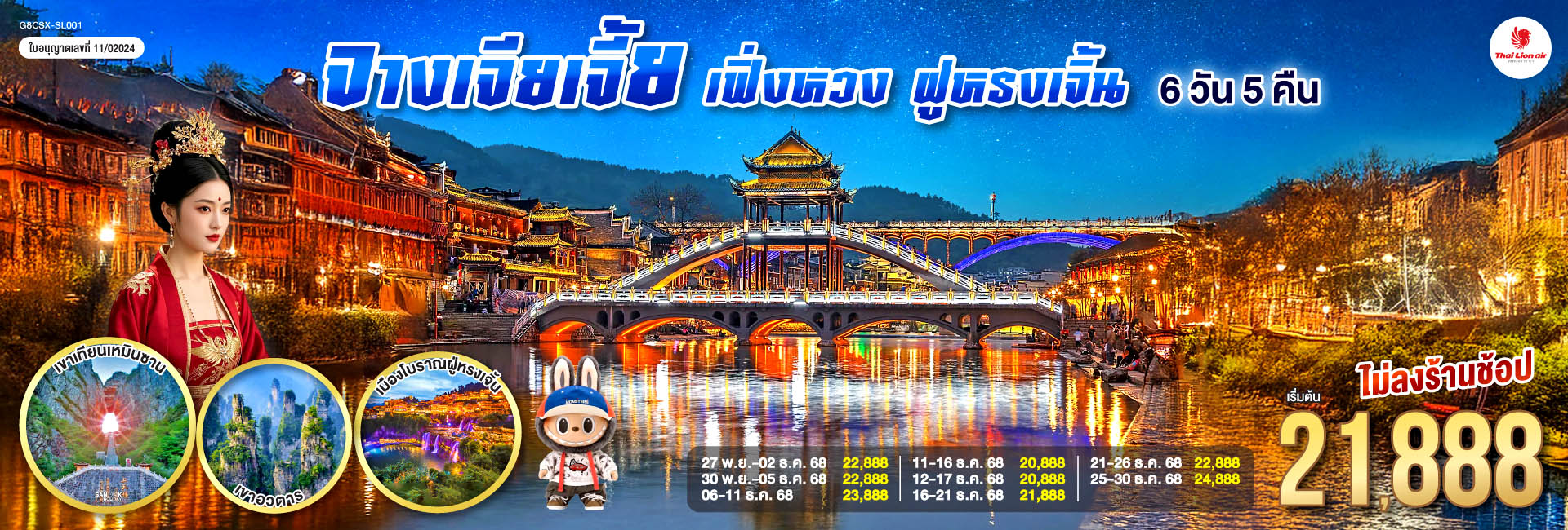 บินตรงฉางซา เที่ยวคุ้ม เที่ยวครบ จางเจียเจี้ย เฟิ่งหวง ฝูหรงเจิ้น 6 วัน 5 คืน โดย สายการบิน ไทย ไลออนแอร์ (SL)