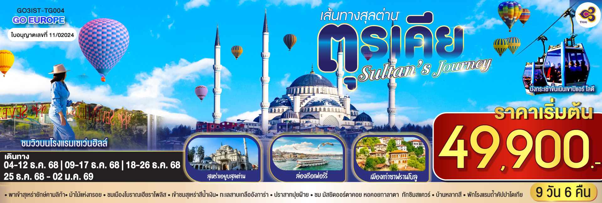 ตุรเคีย มหัศจรรย์น้ำตกหินปูน กับบอลลูนกายสิทธิ์ บินตรง เที่ยวจัดเต็ม 9 วัน 7 คืน โดยสายการบินเตอร์กิช TURKISH (TK)