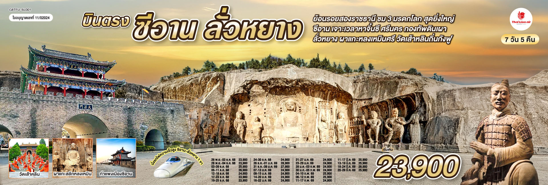 บินตรงซีอาน ย้อนเวลาสู่ฉางอัน เจิ้งโจว ลั่วหยาง หยุนไถซาน 6 วัน 5 คืน โดยสายการบิน ไทย ไลออนแอร์ (SL)