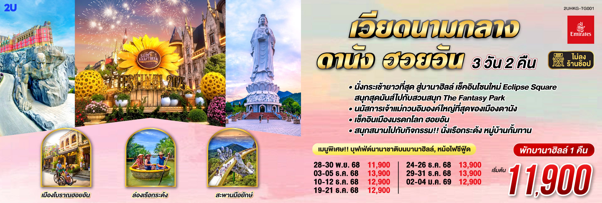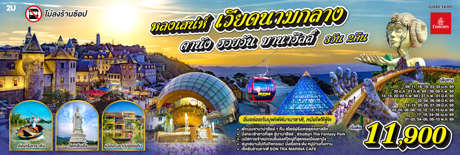 เวียดนามกลาง ดานัง ฮอยอัน บานาฮิลล์ (นอนบานาฮิลล์ที่ใช่...ในเวลาที่ชอบ) 4วัน 3คืน โดยสายการบิน Emirates Airlines (EK)