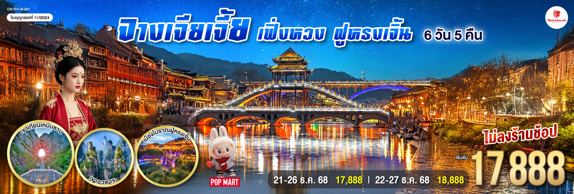 บินตรงฉางซา จางเจียเจี้ย เฟิ่งหวง ฝูหรงเจิ้น 6 วัน 5 คืน โดยสายการบิน ไทย ไลออนแอร์(SL)