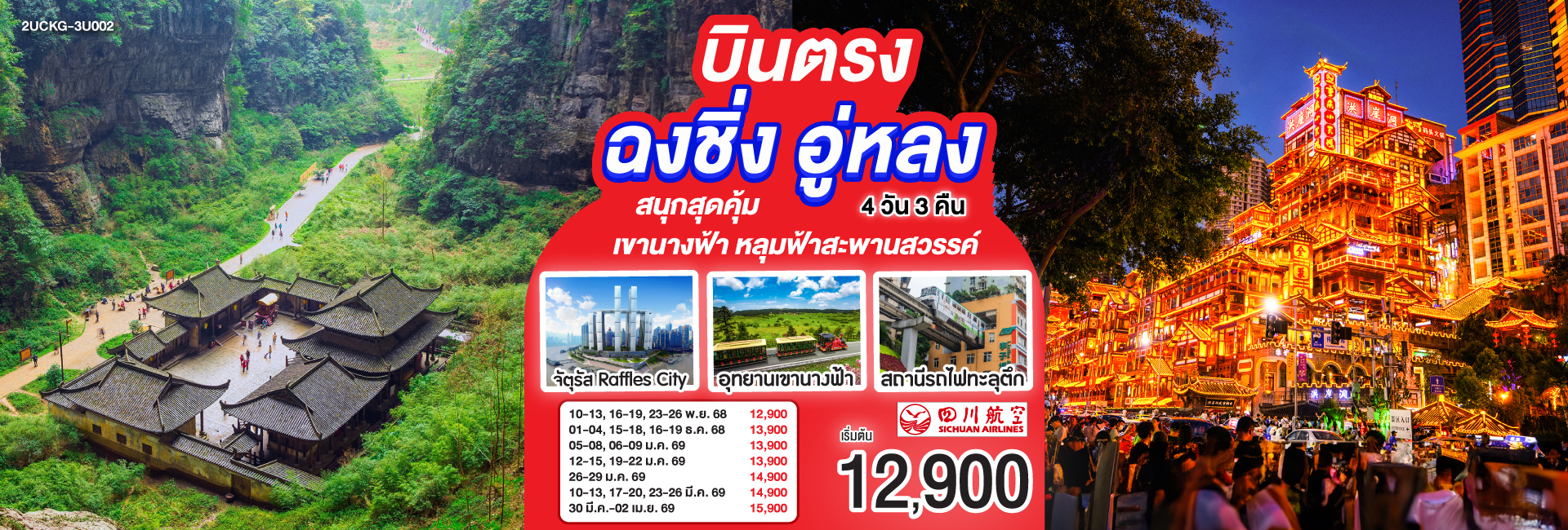 บินตรงฉงชิ่ง อู่หลง ต้าจู๋ เที่ยวครบสูตร มรดกธรรมต้าจู๋ หลุมฟ้าสะพานสวรรค์ 5 วัน 4 คืน โดยสายการบินเสฉวน แอร์ไลน์ (3U)