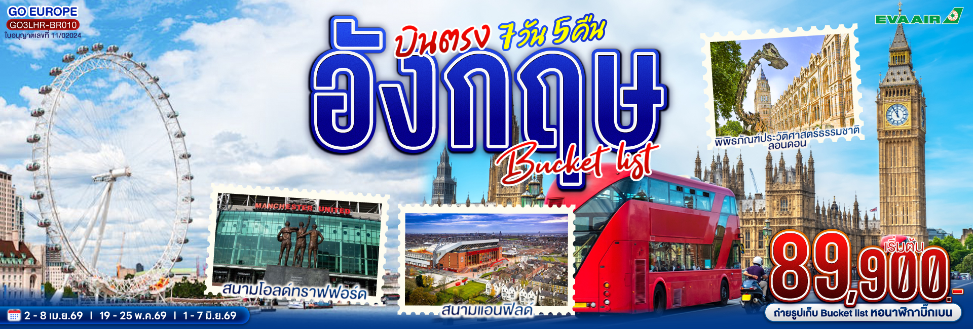 อังกฤษ Bucket list บินตรง 7 วัน 5 คืน โดยสายการบิน EVA Air (BR)