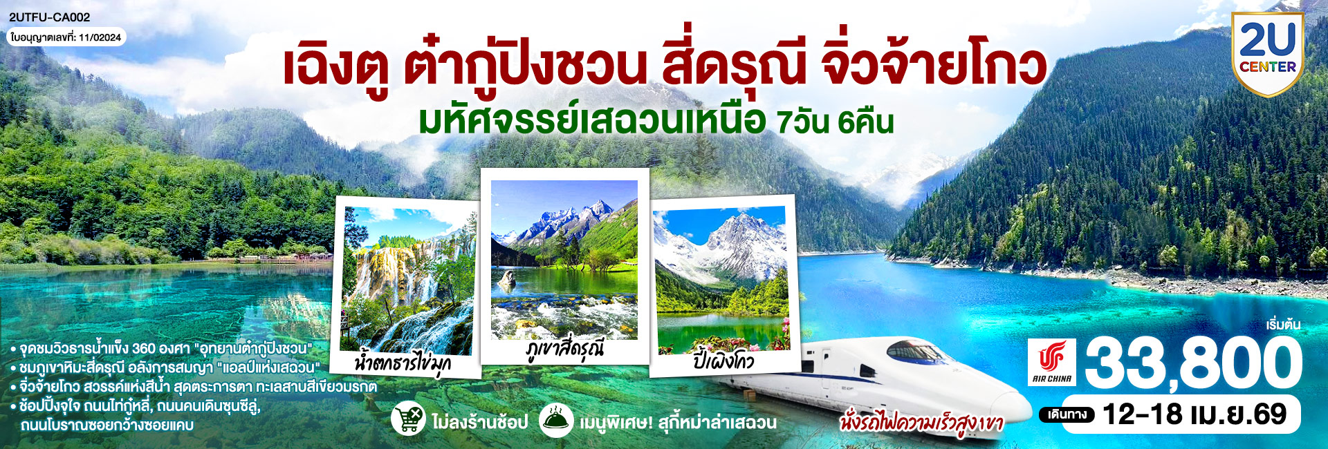 เฉิงตู ต๋ากู่ปิงชวน สี่ดรุณี จิ่วจ้ายโกว“มหัศจรรย์เสฉวนเหนือ” 7วัน 6คืน *ไม่ลงร้านช้อป* โดยสายการบิน Air China (CA)