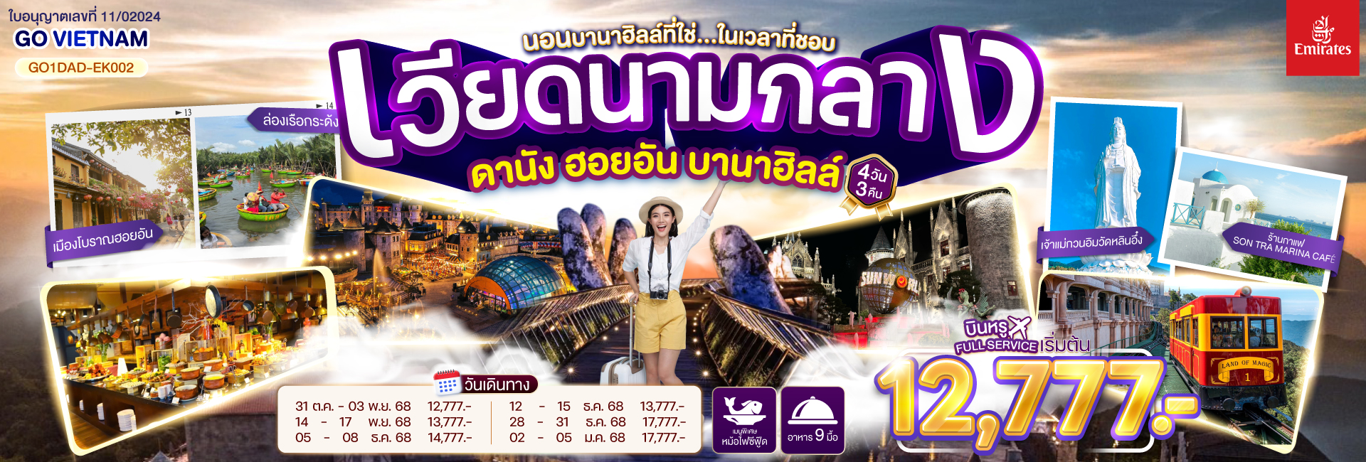 เวียดนามกลาง ดานัง ฮอยอัน บานาฮิลล์ (นอนบานาฮิลล์ที่ใช่...ในเวลาที่ชอบ) 4วัน 3คืน โดยสายการบิน Emirates Airlines (EK)