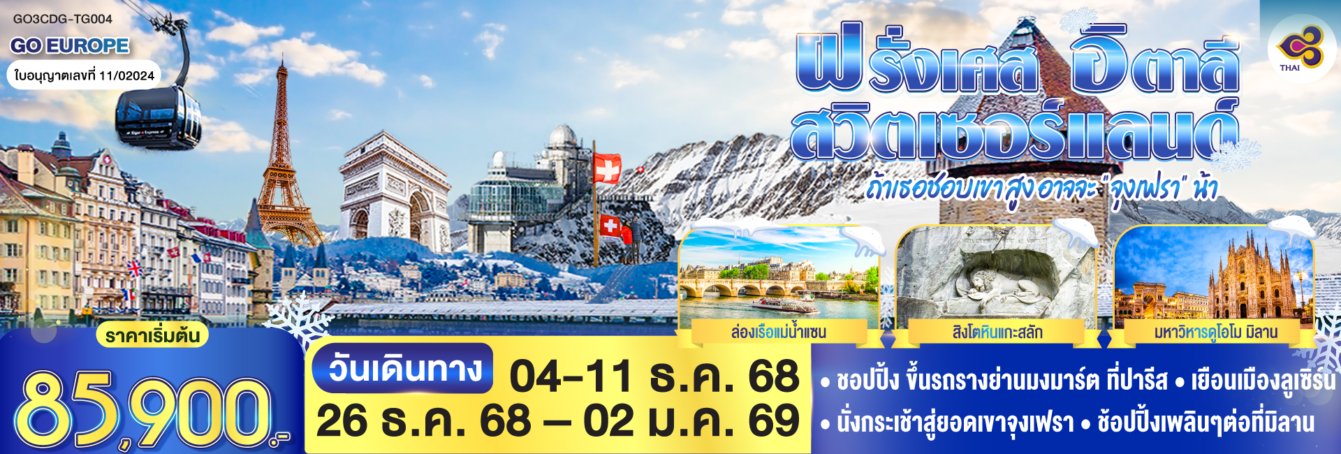 แว่วหวูดรถไฟ พี่แสนดีใจ ยอดเขาจุงเฟรา ฝรั่งเศส - สวิตเซอร์แลนด์ 10 วัน 7 คืน โดยสายการบินไทย (TG)