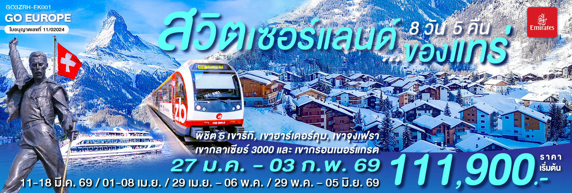 เจลาโต้ยังไม่ละมุน เท่าแสงอรุณที่เซอร์แมท อิตาลี สวิตเซอร์แลนด์ 7 วัน 4 คืน โดยสายการบิน EMIRATES (EK)