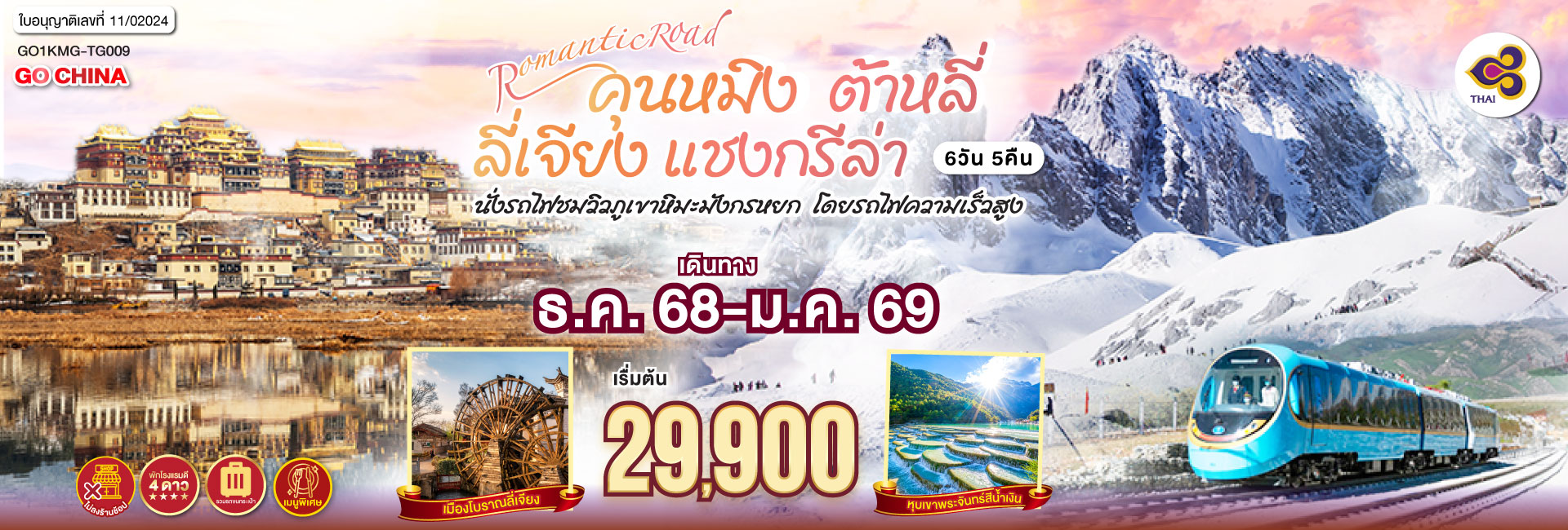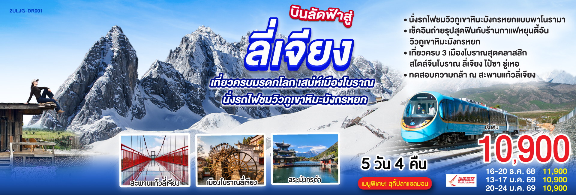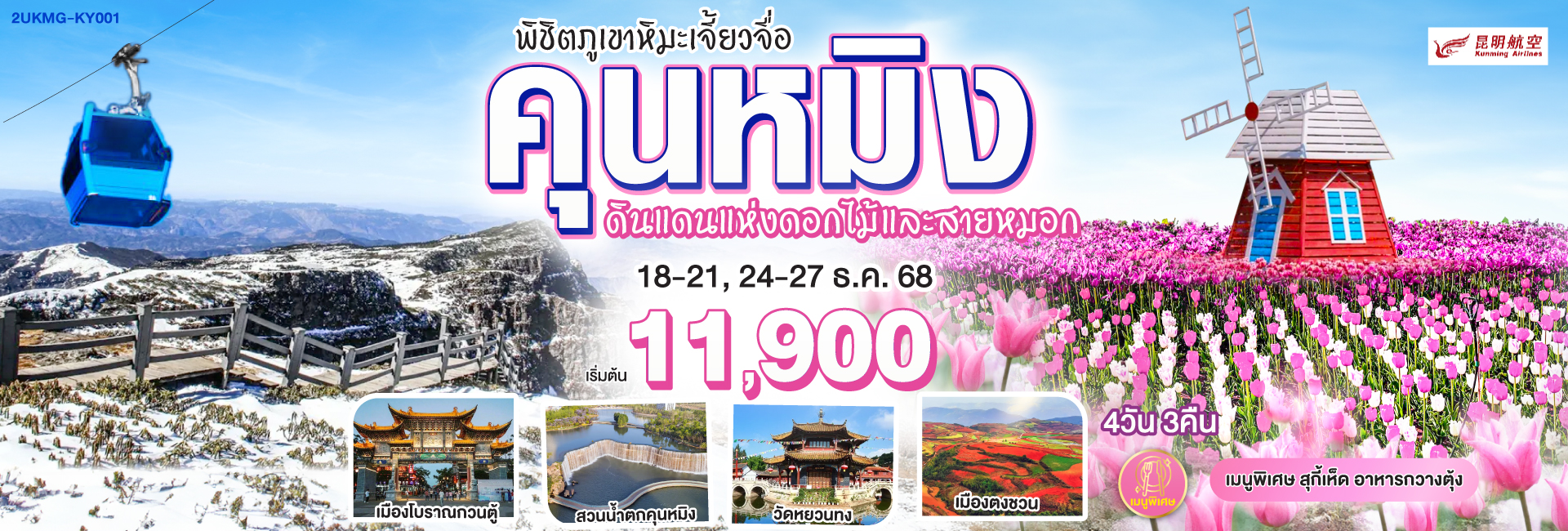 คุนหมิง ต้าหลี่ ลี่เจียง ดินแดนแห่งสายหมอกและดอกไม้ ใต้เงาภูเขาหิมะมังกรหยก 5 วัน 4 คืน *ไม่ลงร้าน* โดยสายการบินไชน่าอีสเทิร์นแอร์ไลน์ (MU)