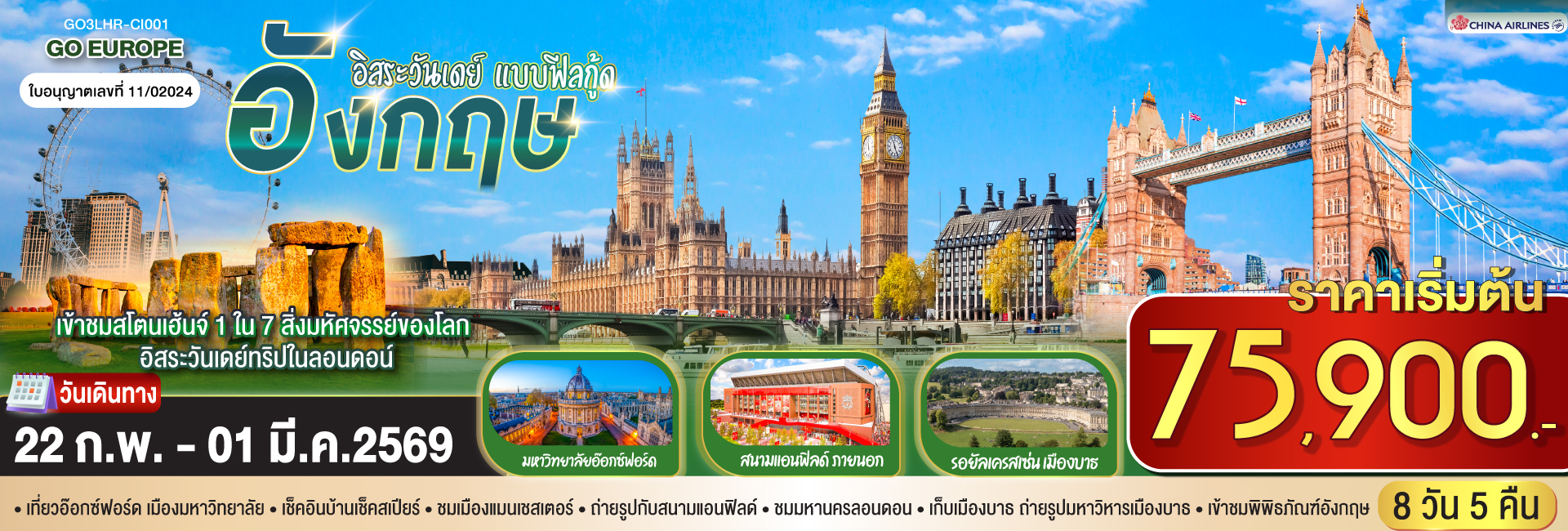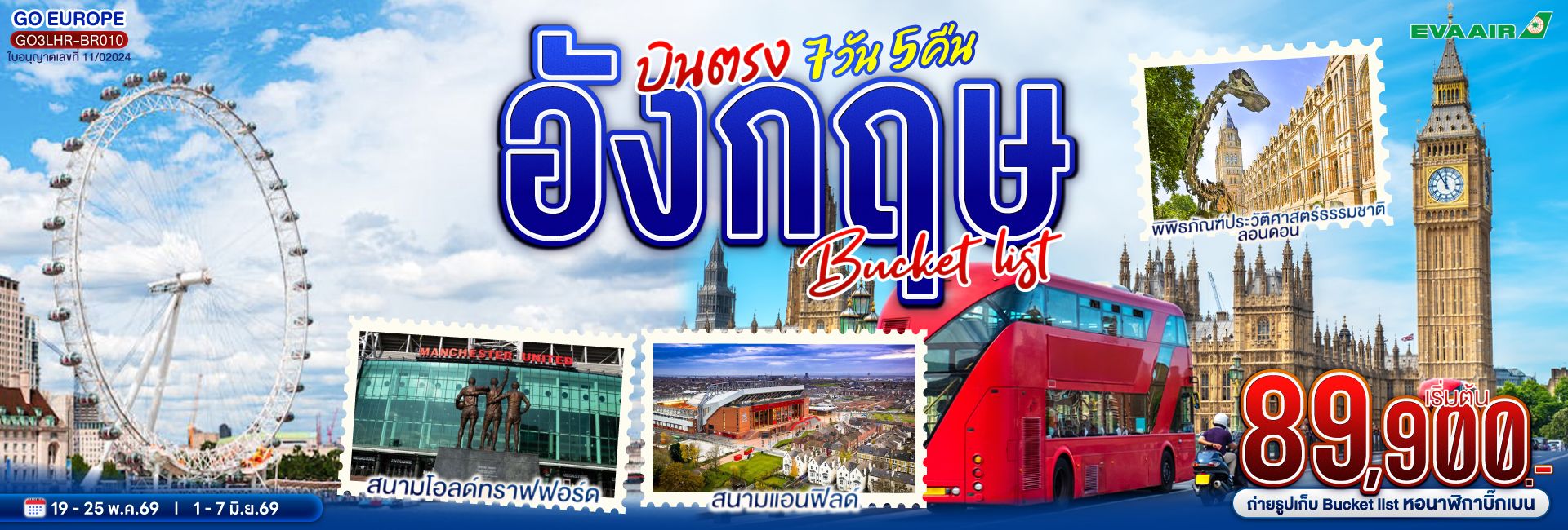 อังกฤษ Bucket list บินตรง 7 วัน 5 คืน โดยสายการบิน EVA Air (BR)