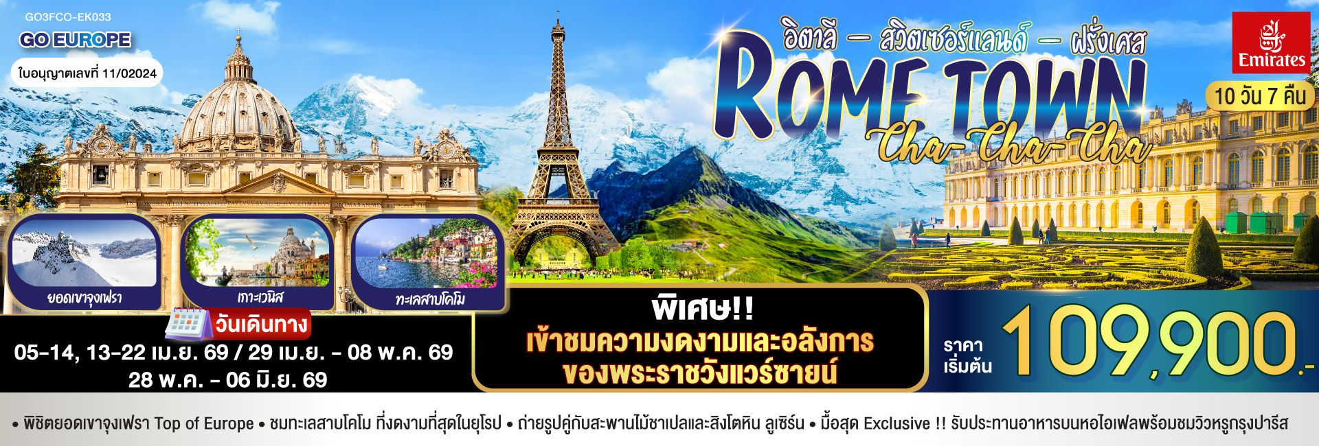 อิตาลี - สวิตเซอร์แลนด์ – ฝรั่งเศส ZERMATT AT THE FIRST SIGHT 9 วัน 6 คืน โดยสายการบิน EMIRATES (EK)