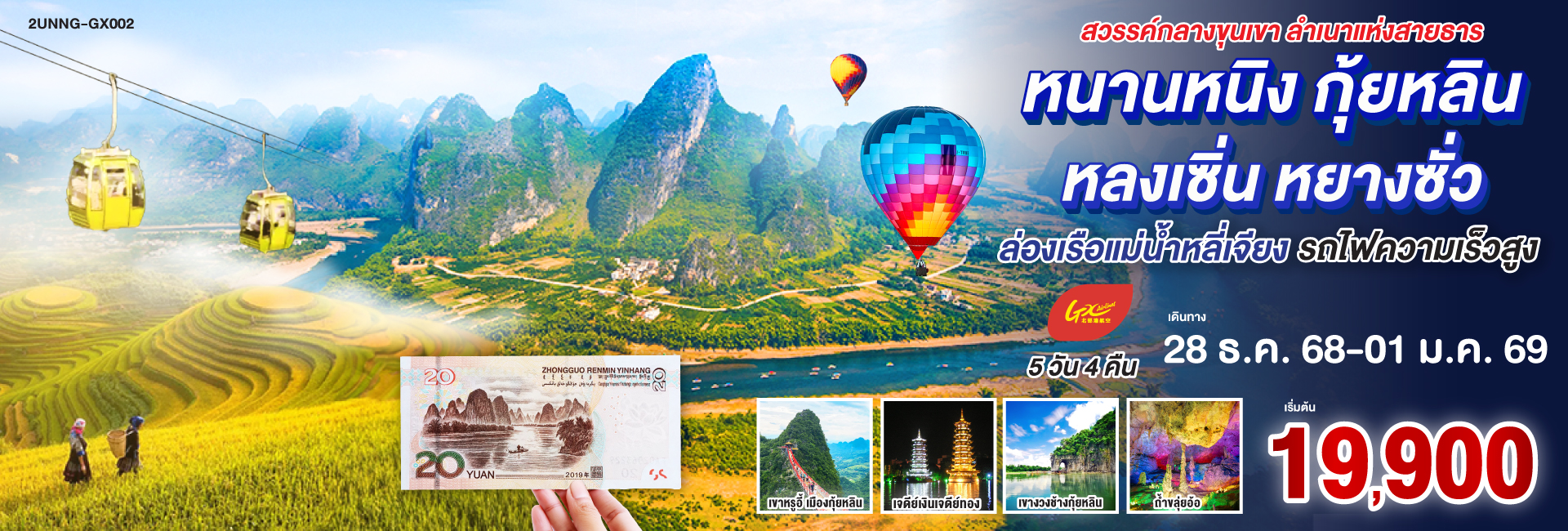 บินตรงกุ้ยหลิน กุ้ยโจว เสี่ยวชีโขว มนต์เสน่ห์ขุนเขาและสายน้ำ ชมหมู่บ้านแม้วซีเจียงกลางขุนเขา 5 วัน 4 คืน โดยรถไฟความเร็วสูง*ทัวร์ไม่ลงร้านรัฐบาล* โดยสายการบินไทยเวียตเจ็ท Thai Vietjet Air (VZ)