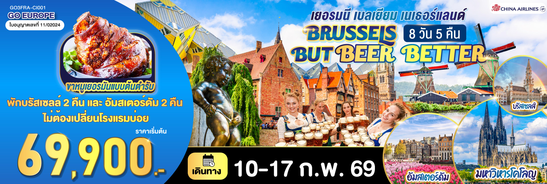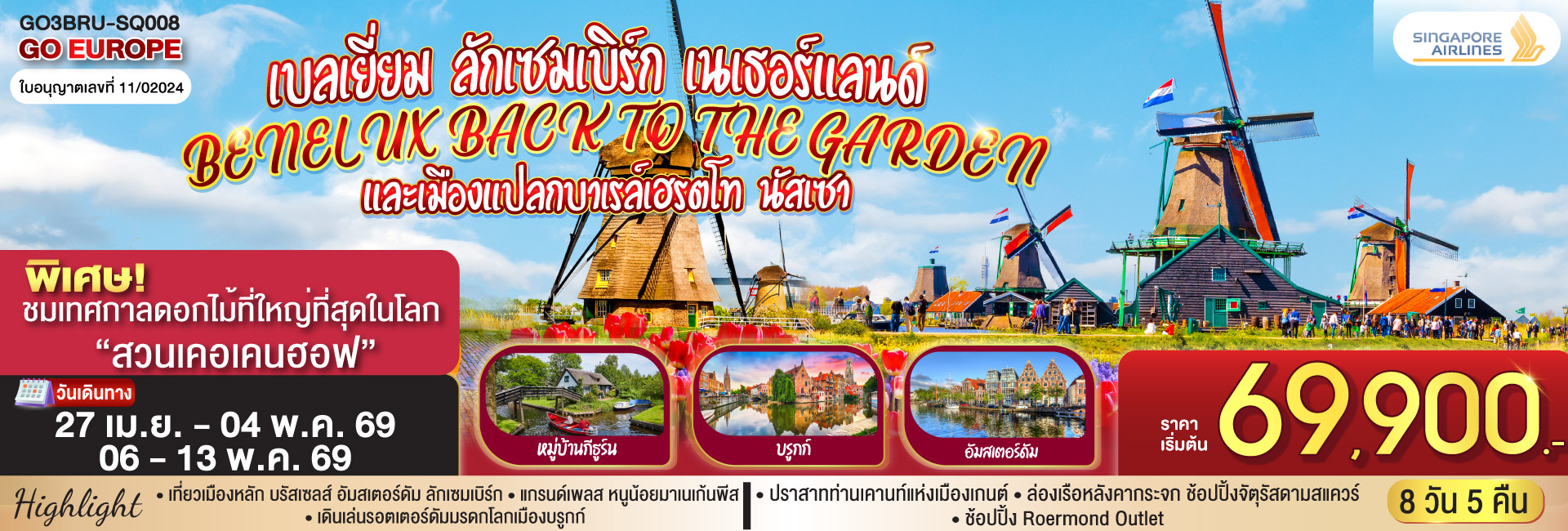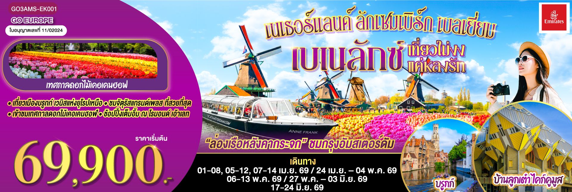 เบเนลักซ์แสนงาม ทิวลิปบานหฤทัย เนเธอร์แลนด์ เบลเยี่ยม ลักเซมเบิร์ก เยอรมนี 7 วัน 5 คืน โดยสายการบิน EVA AIR (BR)