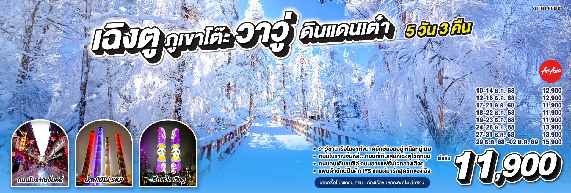 บินตรงเชียงใหม่ เฉิงตู เที่ยว 2 อุทยาน จิ่วจ้ายโกว สี่ดรุณี 5 วัน 4 คืน ** นั่งรถไฟความเร็วสูง** ** เที่ยวเต็มอิ่ม..ไม่ลงร้านช้อป ** โดยสายการบิน Chengdu Airlines (EU)