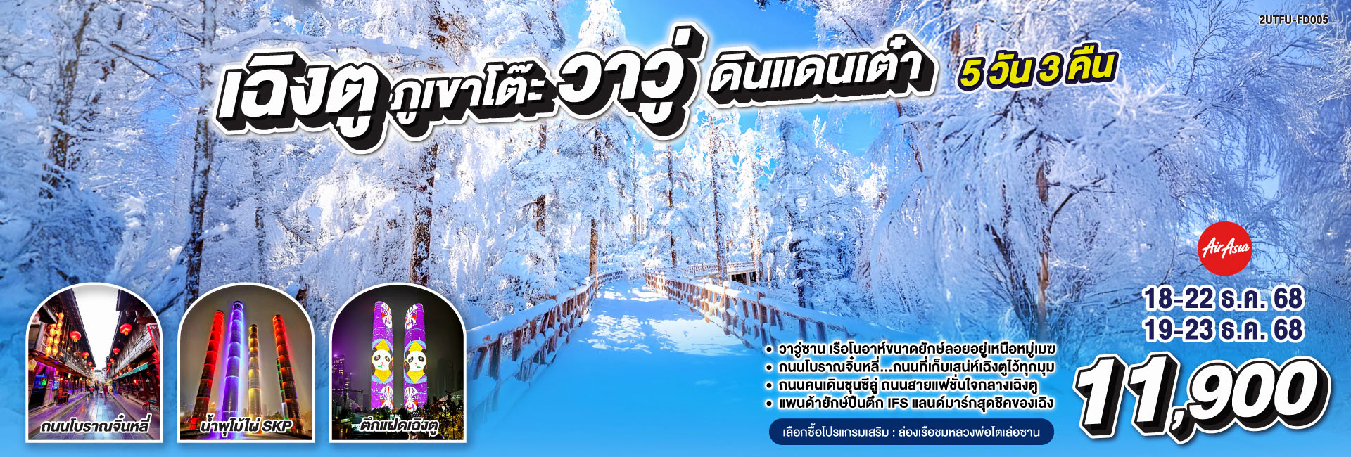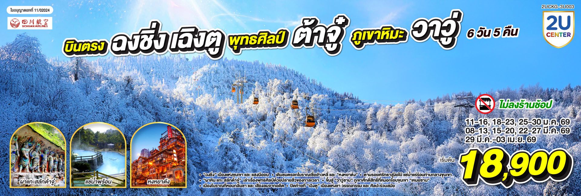 บินตรงเชียงใหม่ เฉิงตู ปี้เผิงโกว เล่อซาน ง้อไบ๊ ภูเขาหิมะวาวู่ 5 วัน 4 คืน ** เที่ยวเต็มอิ่ม..ไม่ลงร้านช้อป** โดยสายการบิน Chengdu Airlines (EU)