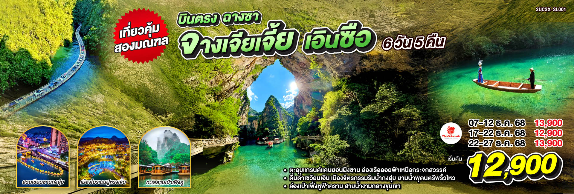บินตรงฉางซา จางเจียเจี้ย เที่ยวเต็มสูตร เขาอวตาร เทียนเหมินซาน สองเมืองโบราณ ฝูหรงเจิ้น เฟิ่งหวง 6 วัน 5 คืน โดยสายการบิน ไทย ไลออนแอร์ (SL)