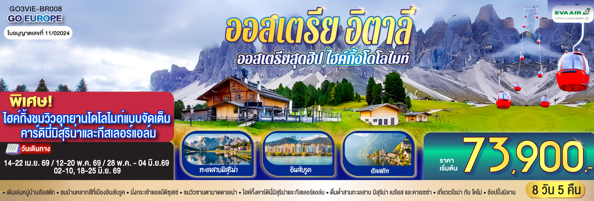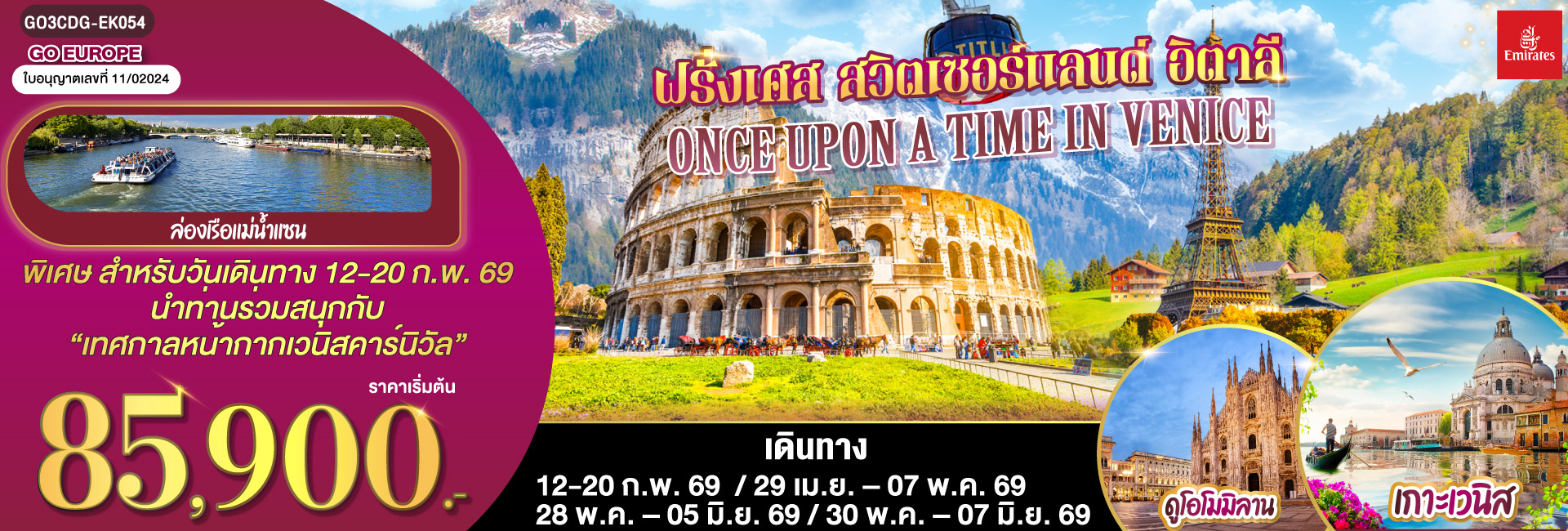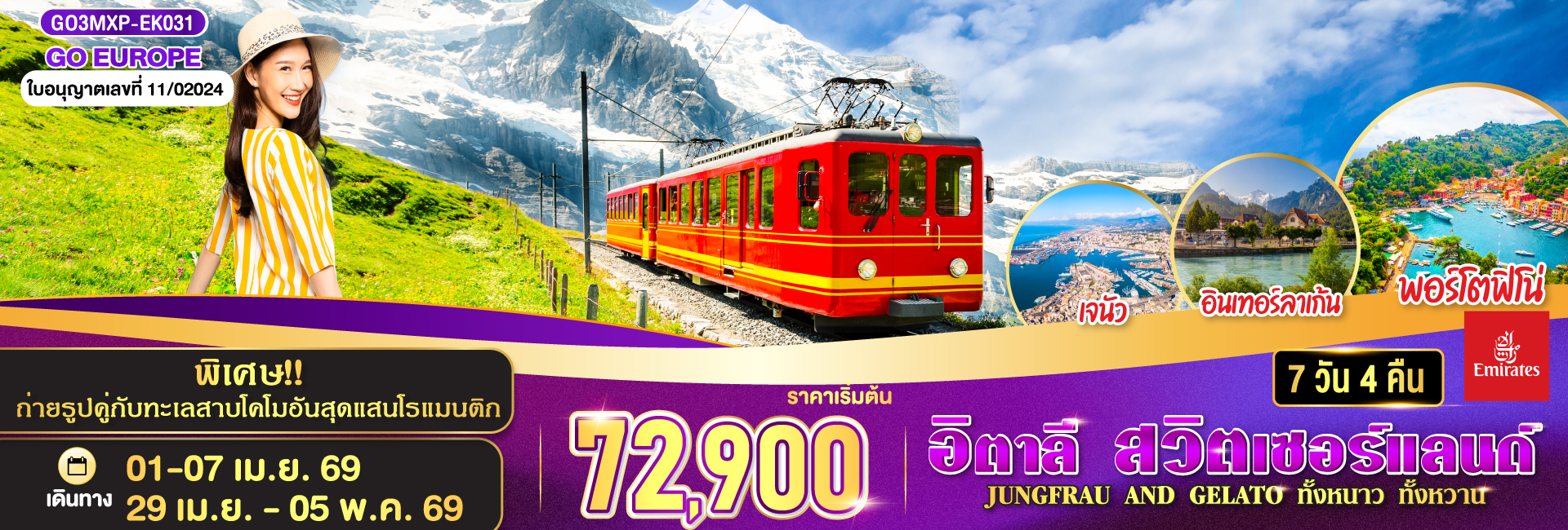 ดาวหลงฟ้า ภูผากลาเซียร์ อิตาลี สวิตเซอร์แลนด์ 7 วัน 4 คืน โดยสายการบินเอมิเรตส์ [EK]