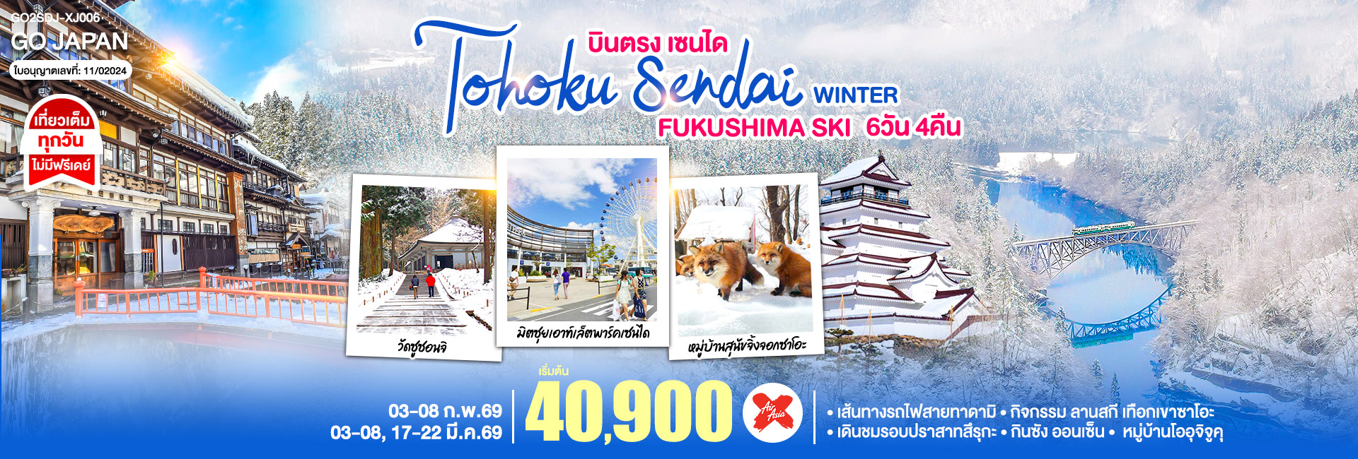 บินตรง TOHOKU SENDAI SNOW MONSTER 5D 3N โดยสายการบินไทยแอร์เอเชีย เอ็กซ์ [XJ]
