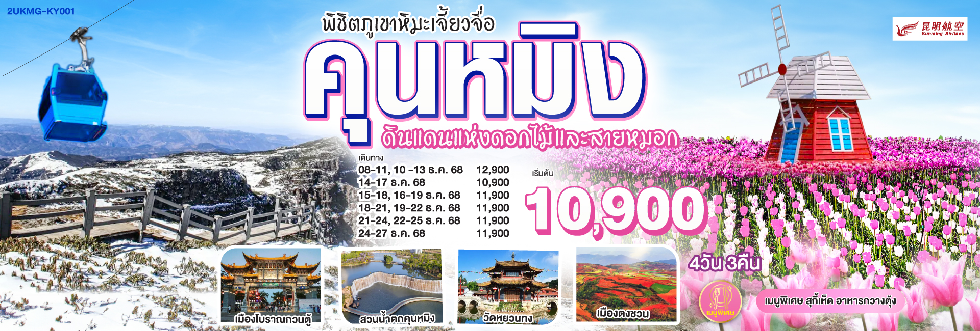 ไปแอ่วกันเต๊อะ...บินตรงเชียงใหม่ คุนหมิง ตงชวน ภูเขาหิมะเจียวจื่อซาน 4 วัน 3 คืน ** เที่ยวเต็มอิ่ม..ไม่ลงร้านช้อป** โดยสายการบิน Ruili Airlines (DR)