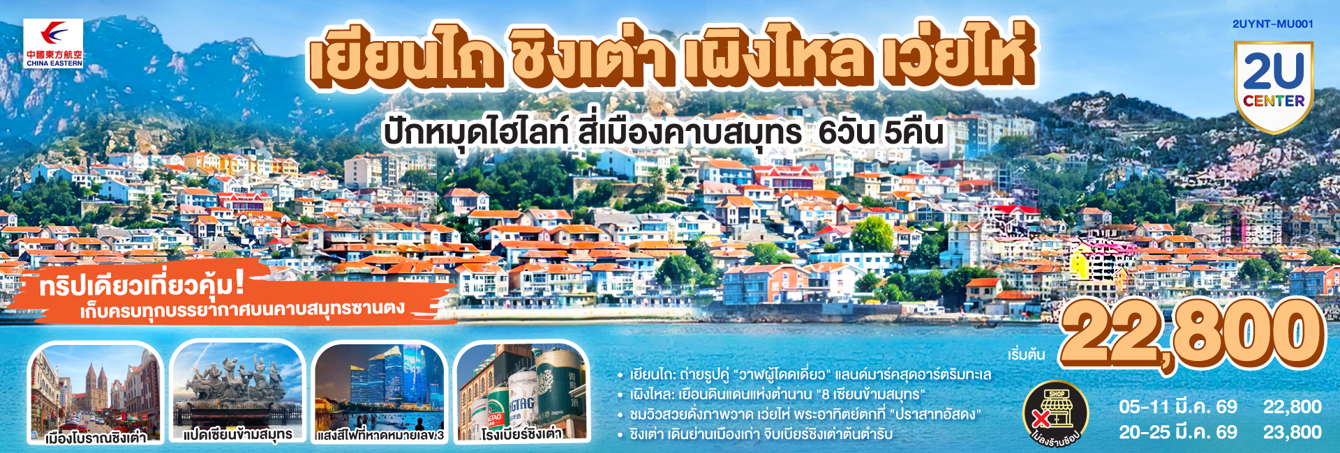 เยียนไถ ชิงเต่า เว่ยไห่ มนต์รักชายฝั่งทะเล ปราสาทเทพนิยายและสายลมฤดูใบไม้ผลิ 6 วัน 5 คืน โดยสายการบิน ไชน่า เซาเทิร์น (CZ)