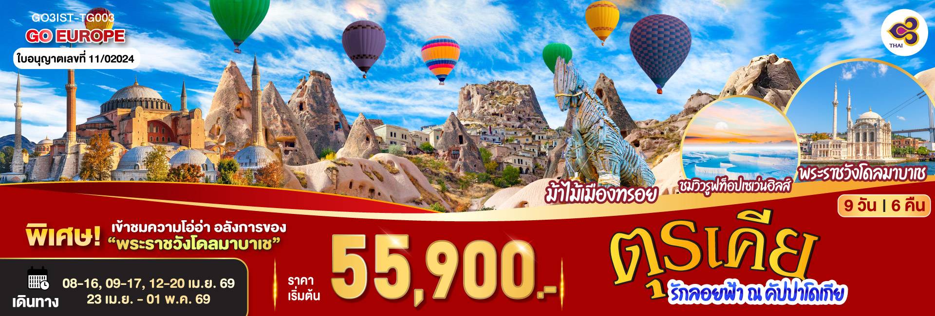 ตุรเคีย มหัศจรรย์น้ำตกหินปูน กับบอลลูนกายสิทธิ์ บินตรง เที่ยวจัดเต็ม 9 วัน 7 คืน โดยสายการบินเตอร์กิช TURKISH (TK)