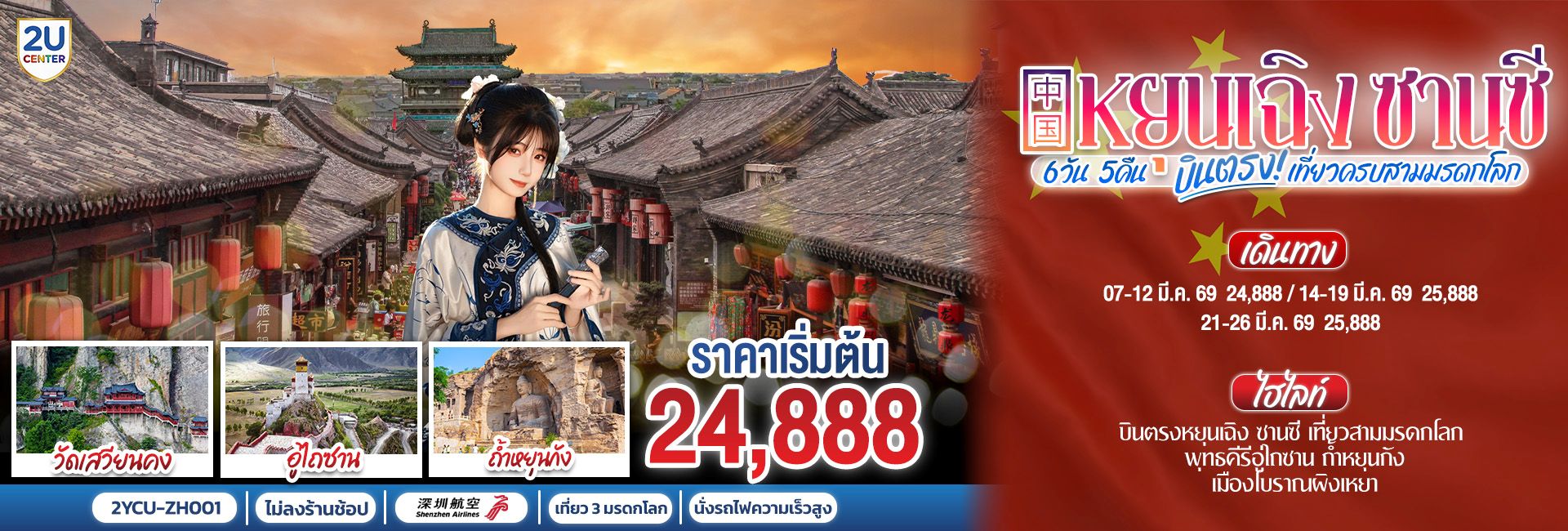 บินตรงซีอาน เหยียนอัน หัวซาน ส่านเป่ย ท่องประวัติศาสตร์แม่น้ำฮวงโห 7 วัน 5 คืน โดยสายการบิน ไทย ไลออนแอร์ (SL)
