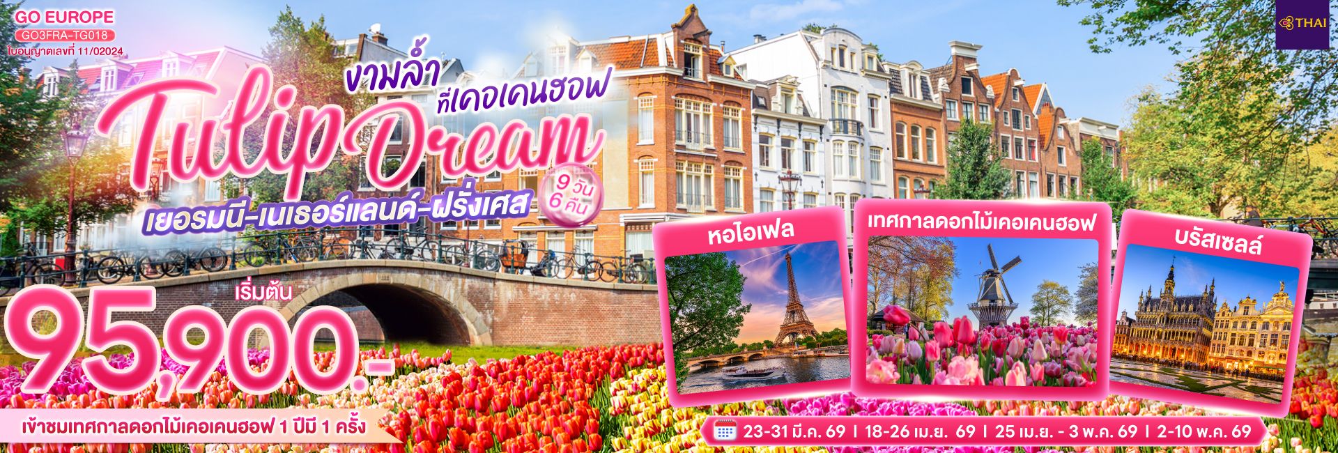 เยอรมนี เนเธอร์แลนด์ เบลเยียม ฝรั่งเศส Tulip Dream งามล้ำที่เคอเคนฮอฟ 9 วัน 6 คืน โดยสายการบินไทย (TG)