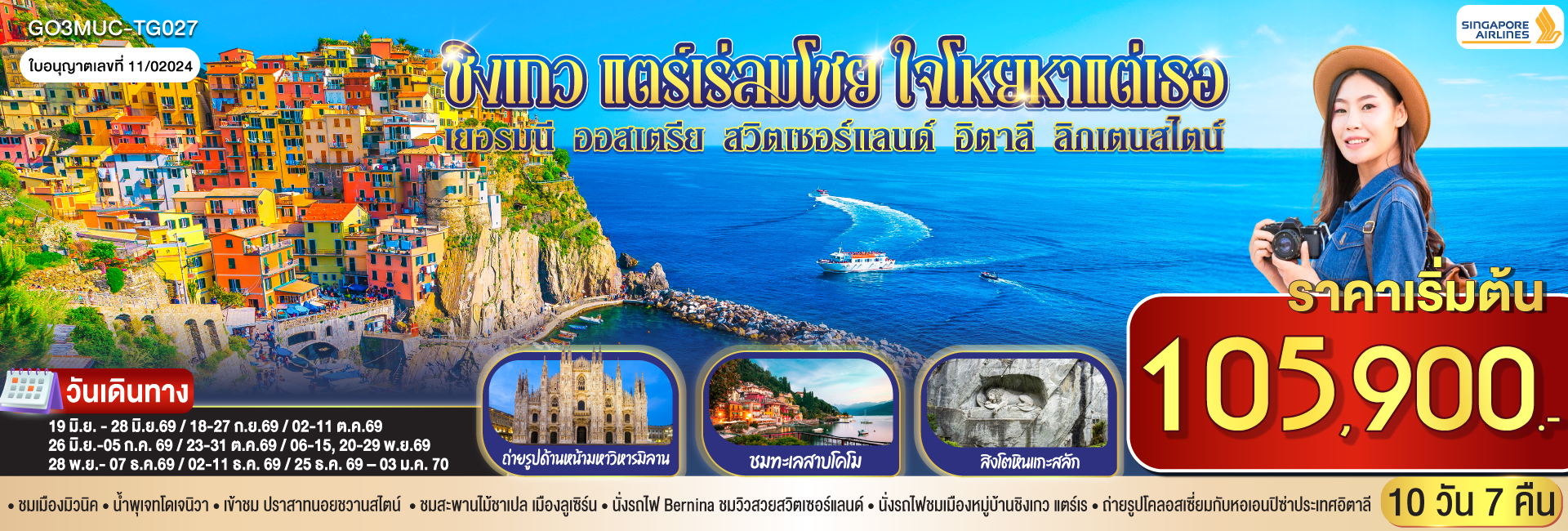 สวยสะพรึง อึ้งทุกแลนด์มาร์ก อิตาลี – สวิตเซอร์แลนด์ – ฝรั่งเศส 10 วัน 7 คืน โดยสายการบิน EMIRATES (EK)