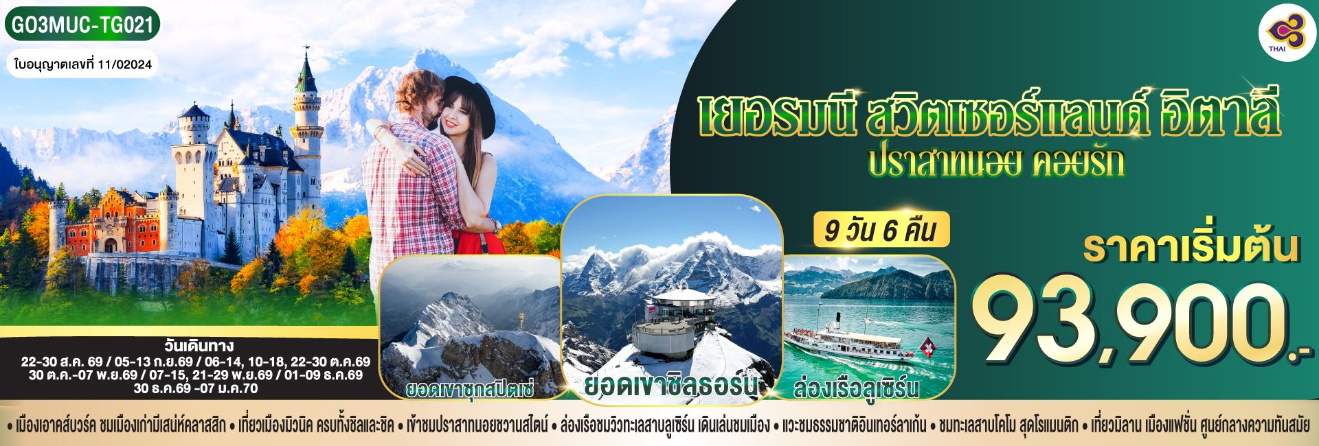 แกรนด์สวิตเซอร์แลนด์ 9 วัน 6 คืน โดยสายการบินไทย (TG)