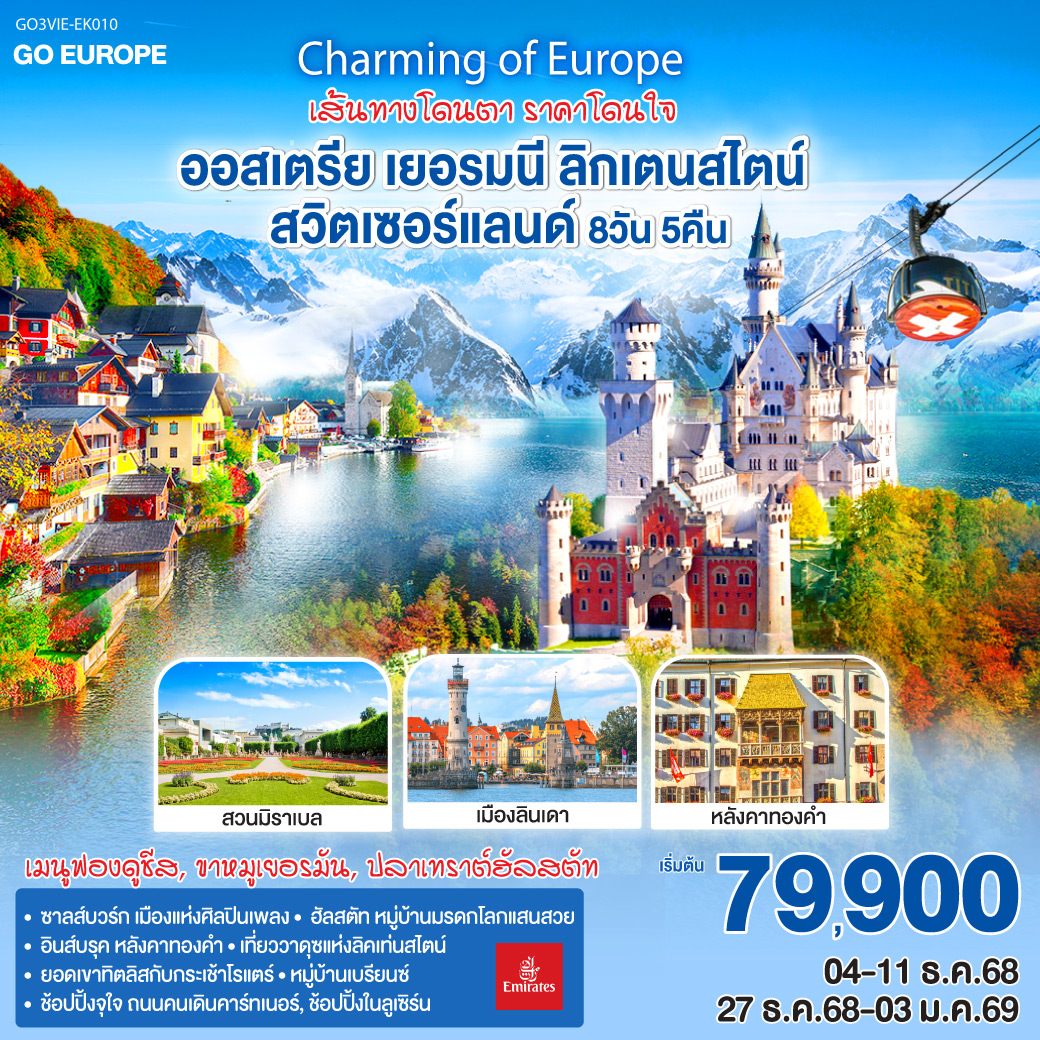เที่ยวดินแดนเทพนิยาย #ยุโรปตะวันออก สุดคลาสสิค! ประเทศ #ออสเตรีย เดือน ตุลาคม - ธันวาคม 66 ไฮไลต์เที่ยวเมือง #ฮัลสตัท เป็นชนบทเล็กๆ ที่สวยงาม และ เป็นสถานที่ท่องเที่ยวที่มีชื่อเสียงที่สุด