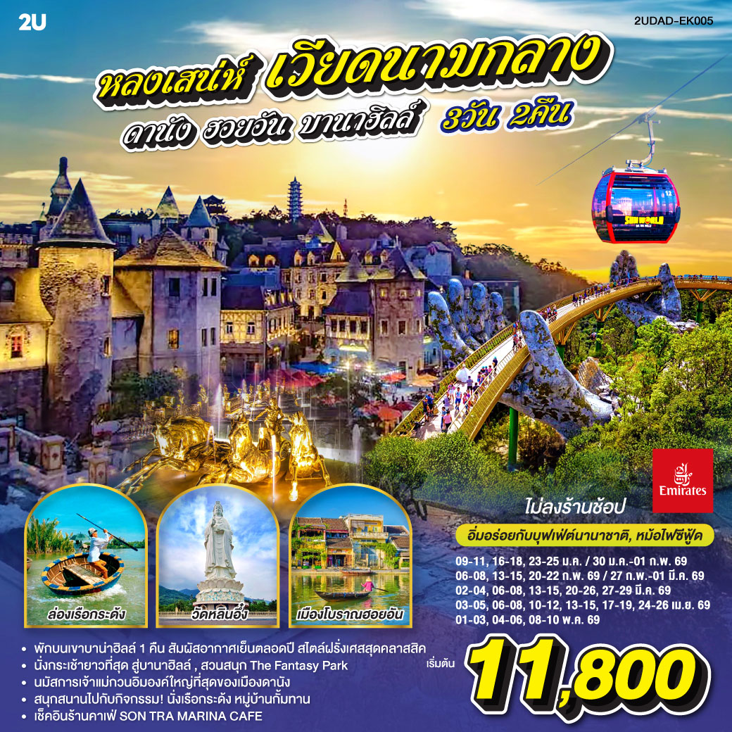 หลงเสน่ห์ เวียดนามกลาง ดานัง ฮอยอัน พักบานาฮิลล์ 1 คืน (ไม่ลงร้านช้อป) 3 วัน 2 คืน โดยสายการบิน Emirates Airlines (EK)