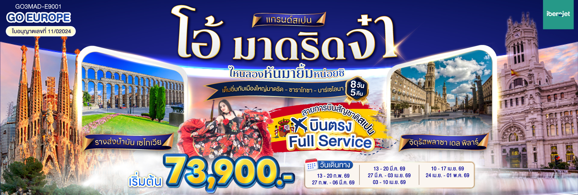 โปรตุเกส - สเปน เสน่ห์หาเปนา อาลัมบราเกินบรรยาย 10 วัน 7 คืน โดยสายการบินเอทิฮัด ETIHAD (EY)