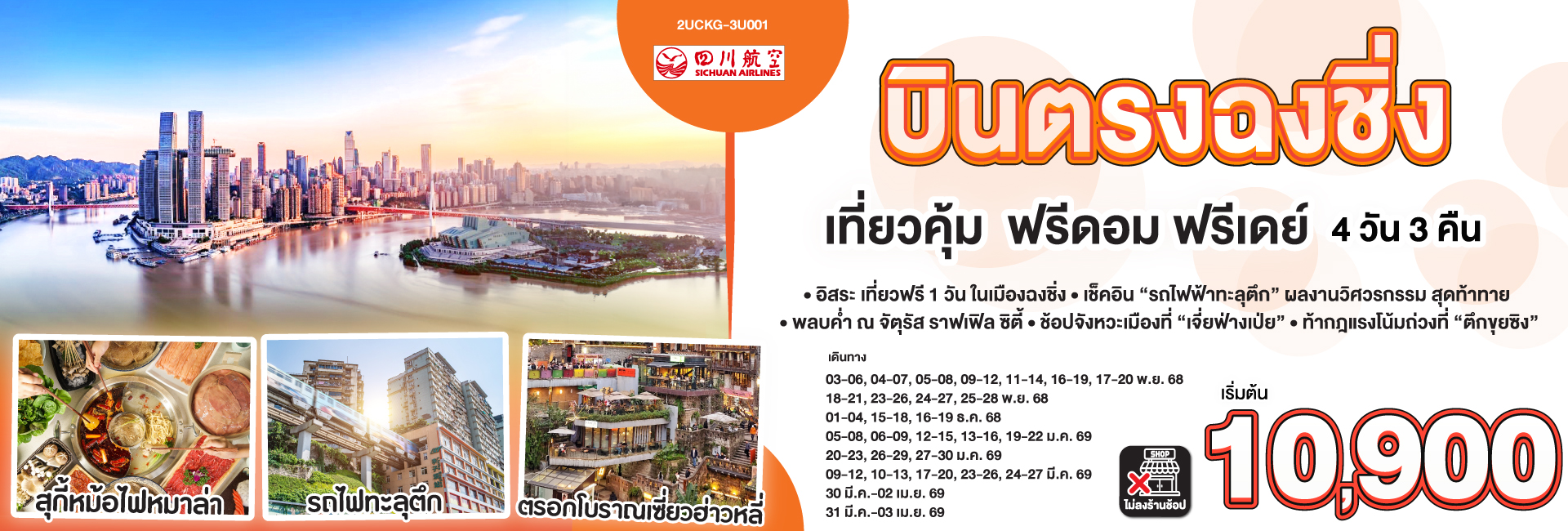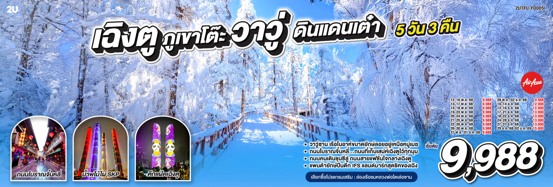 ฉงชิ่ง เฉิงตู สวยจึ้งแบบตะโกน...อู่หลง สี่ดรุณี ปี้เผิงโกว 7 วัน 5 คืน **ไม่ลงร้านช้อป** โดยสายการบิน Air Asia (FD)