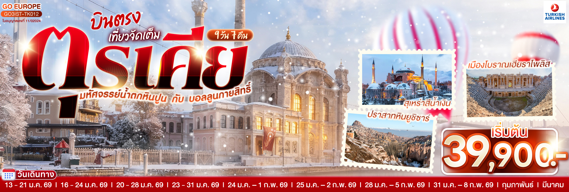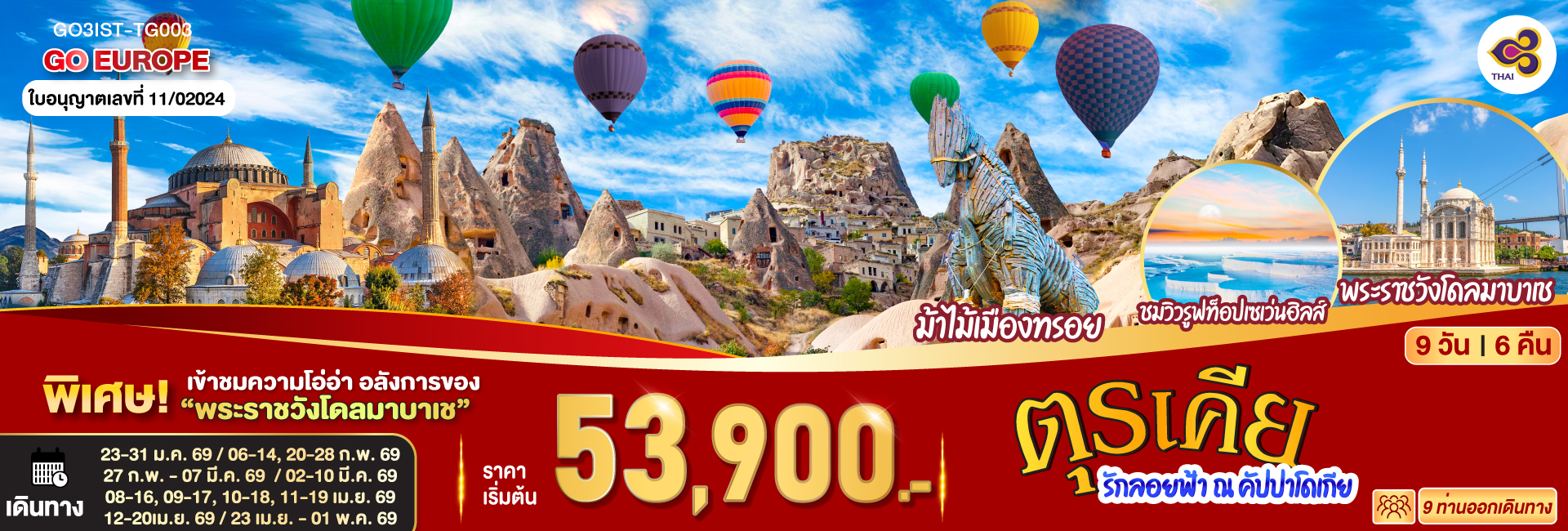 ตุรเคีย มหัศจรรย์น้ำตกหินปูน กับบอลลูนกายสิทธิ์ บินตรง เที่ยวจัดเต็ม 9 วัน 7 คืน โดยสายการบินเตอร์กิช TURKISH (TK)