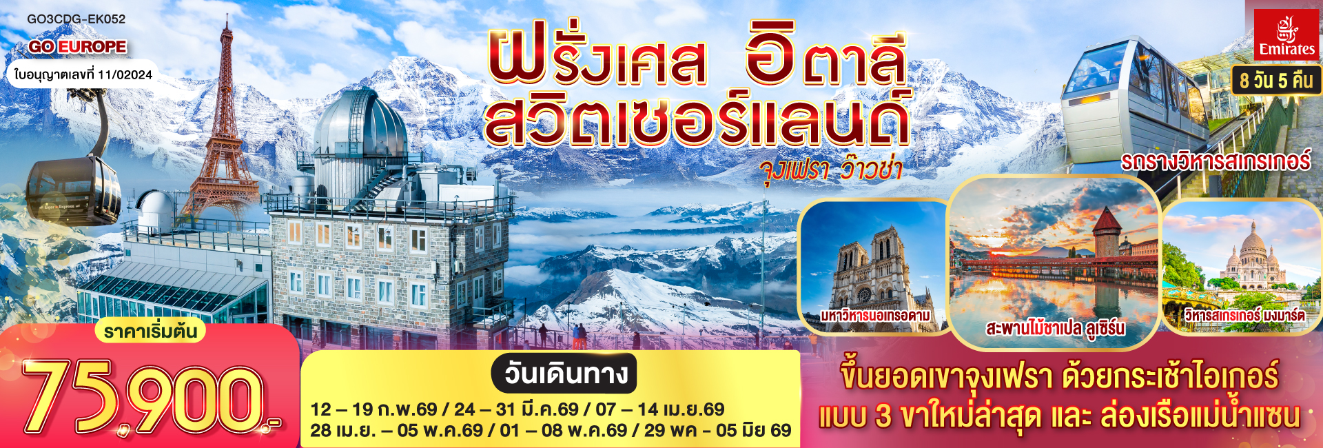 ฝรั่งเศส สวิตเซอร์แลนด์ อิตาลี Classic Route with Venice FEST time Carnival 9 วัน 6 คืน โดยสายการบิน EMIRATES (EK)