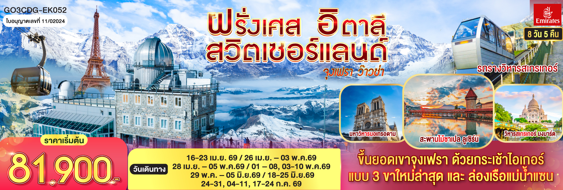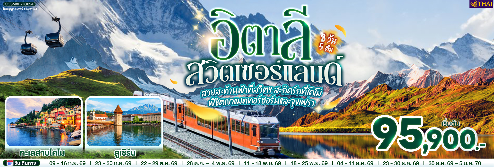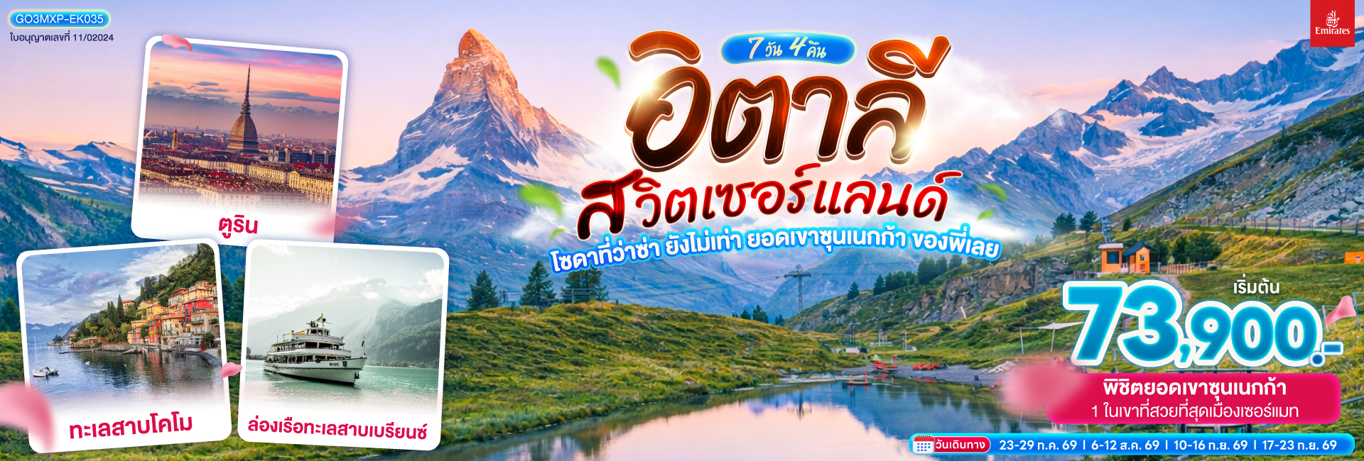 สวยสะพรึง อึ้งทุกแลนด์มาร์ก อิตาลี – สวิตเซอร์แลนด์ – ฝรั่งเศส 10 วัน 7 คืน โดยสายการบิน EMIRATES (EK)