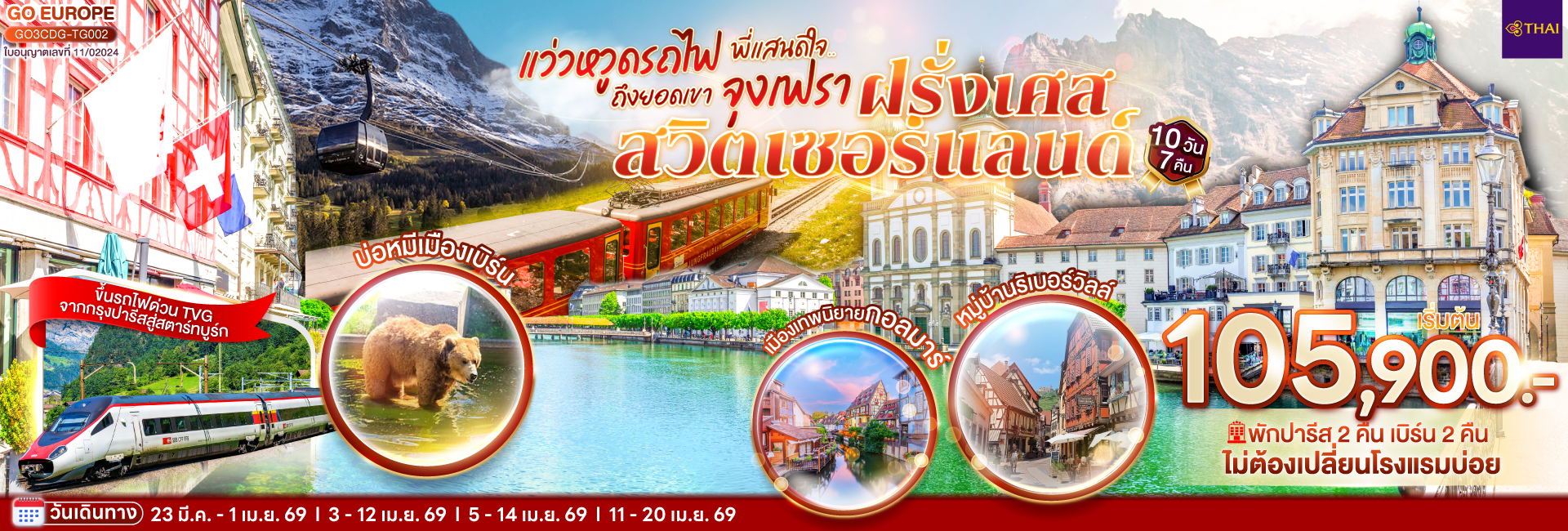 เคอเคนฮอฟ โชติช่วงทิวลิปงาม ฝรั่งเศส – เบลเยี่ยม - เนเธอร์แลนด์ ลักเซมเบิร์ก - สวิตเซอร์แลนด์ 10 วัน 7 คืน โดยสายการบินไทย (TG)