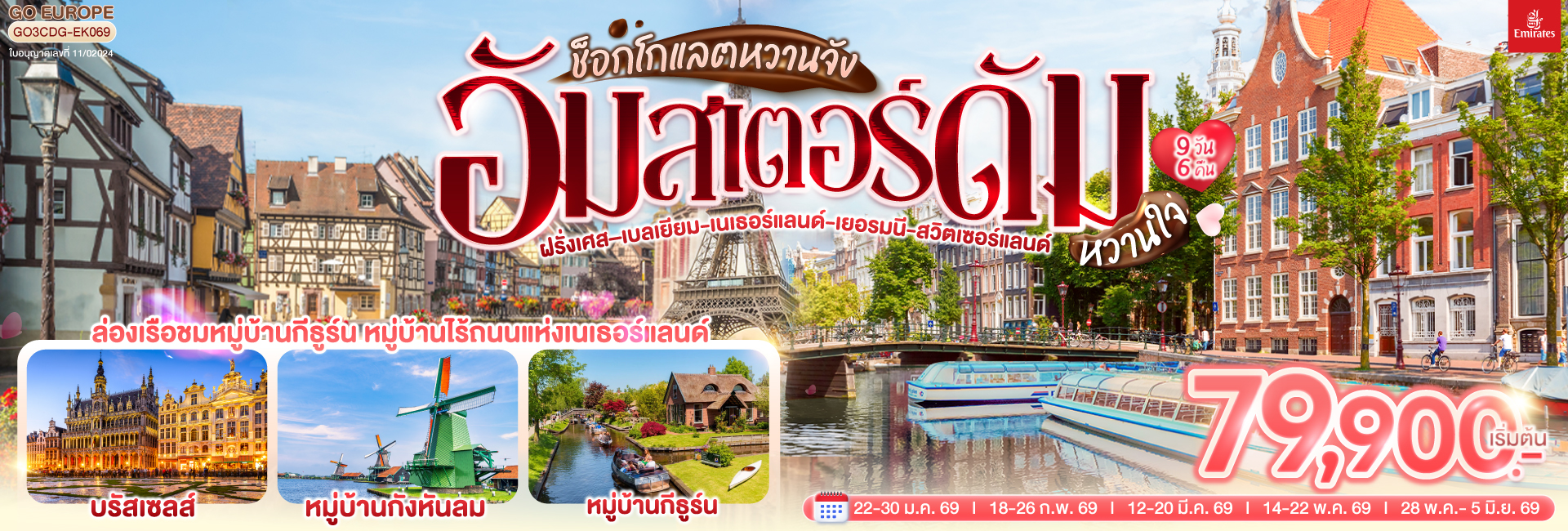 เบเนลักซ์ รักเต็มถัง เบลเยี่ยม ลักเซมเบิร์ก เยอรมนี เนเธอร์แลนด์ 9 วัน 6 คืน โดยสายการบินไทย (TG)