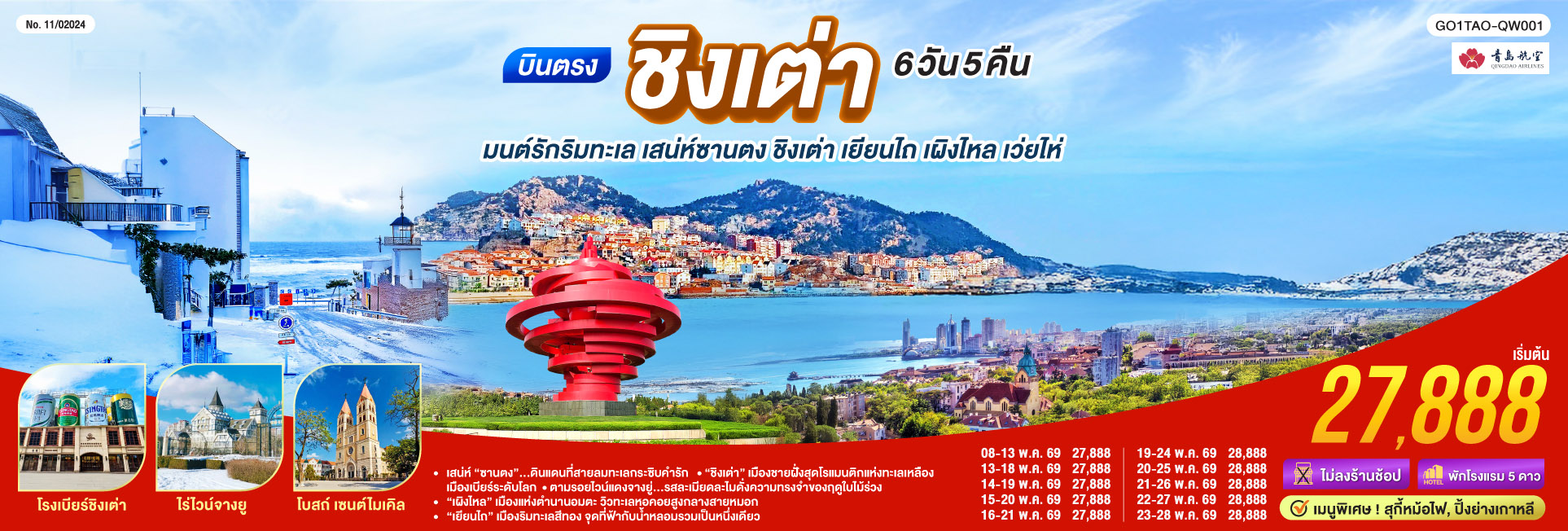 ชิงเต่า เผิงไหล เว่ยไห่ เยียนไถ มาเก๊า เสน่ห์เมืองเก่าชายฝั่งจีนตะวันออก เมืองแห่งวิวทะเลและวัฒนธรรม 7 วัน 6 คืน โดยสายการบินแอร์มาเก๊า (NX)