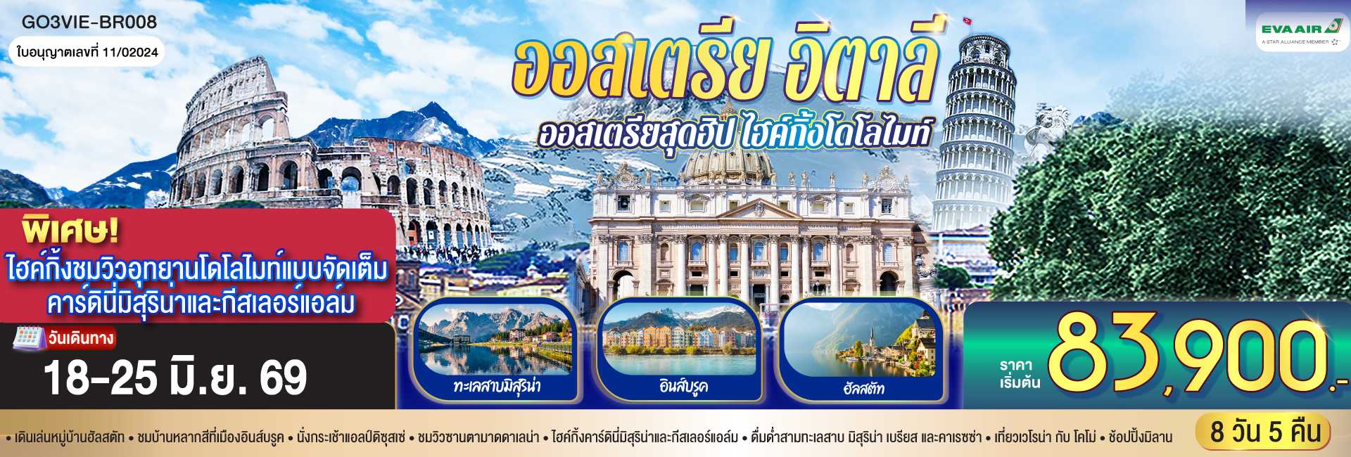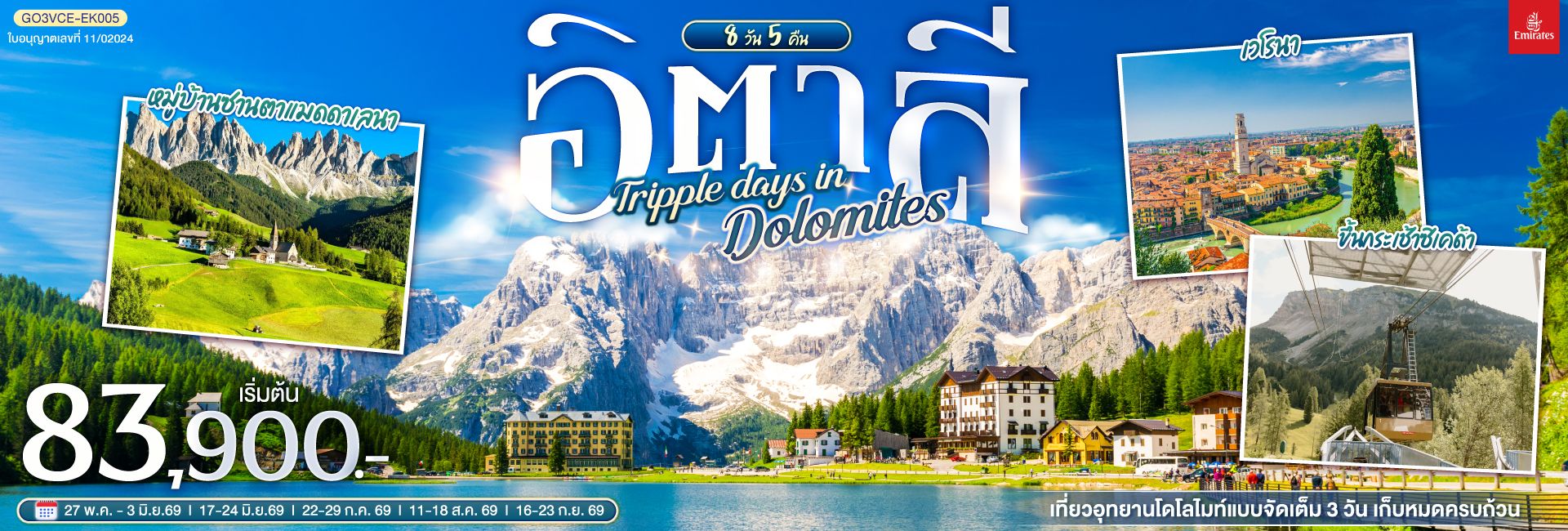 อิตาลี TRIPPLE DAYS IN DOLOMITES 8 วัน 5 คืน โดยสายการบิน EMIRATES (EK)