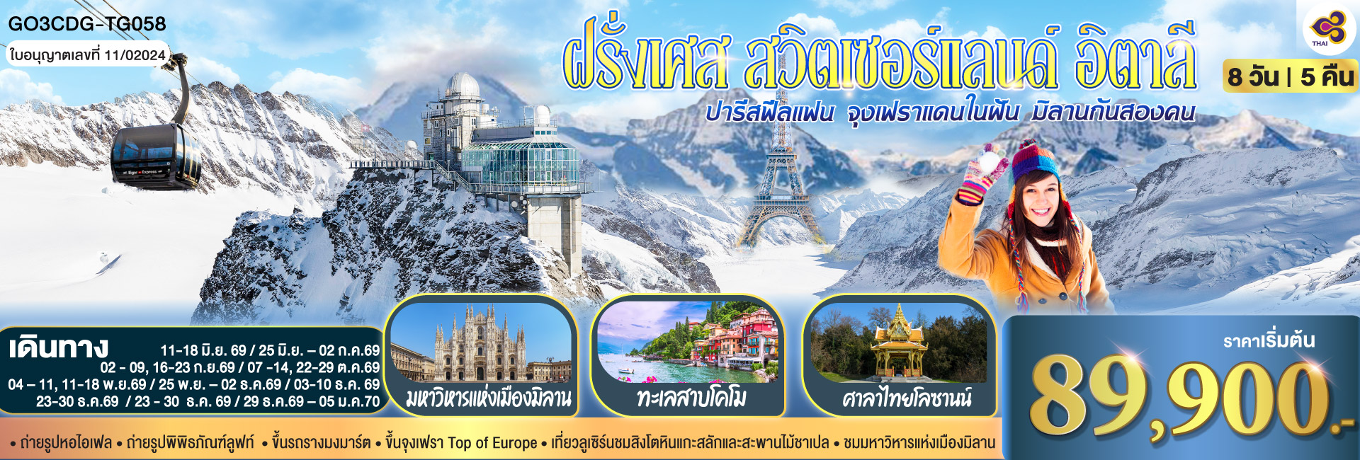 สวยข้ามฟ้า จากปารีสเทือกเขาแอลป์ถึงมิลาน ฝรั่งเศส – สวิตเซอร์แลนด์ – อิตาลี 8 วัน 5 คืน โดยสายการบิน Emirates (EK)