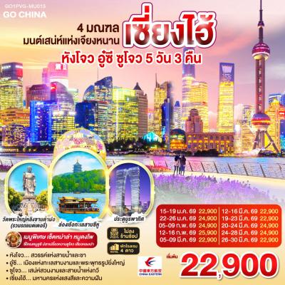 4 มณฑล มนต์เสน่ห์แห่งเจียงหนาน หังโจว อู๋ซี ซูโจว เซี่ยงไฮ้ 5วัน 3คืน โดยสายการบิน China Eastern (MU)