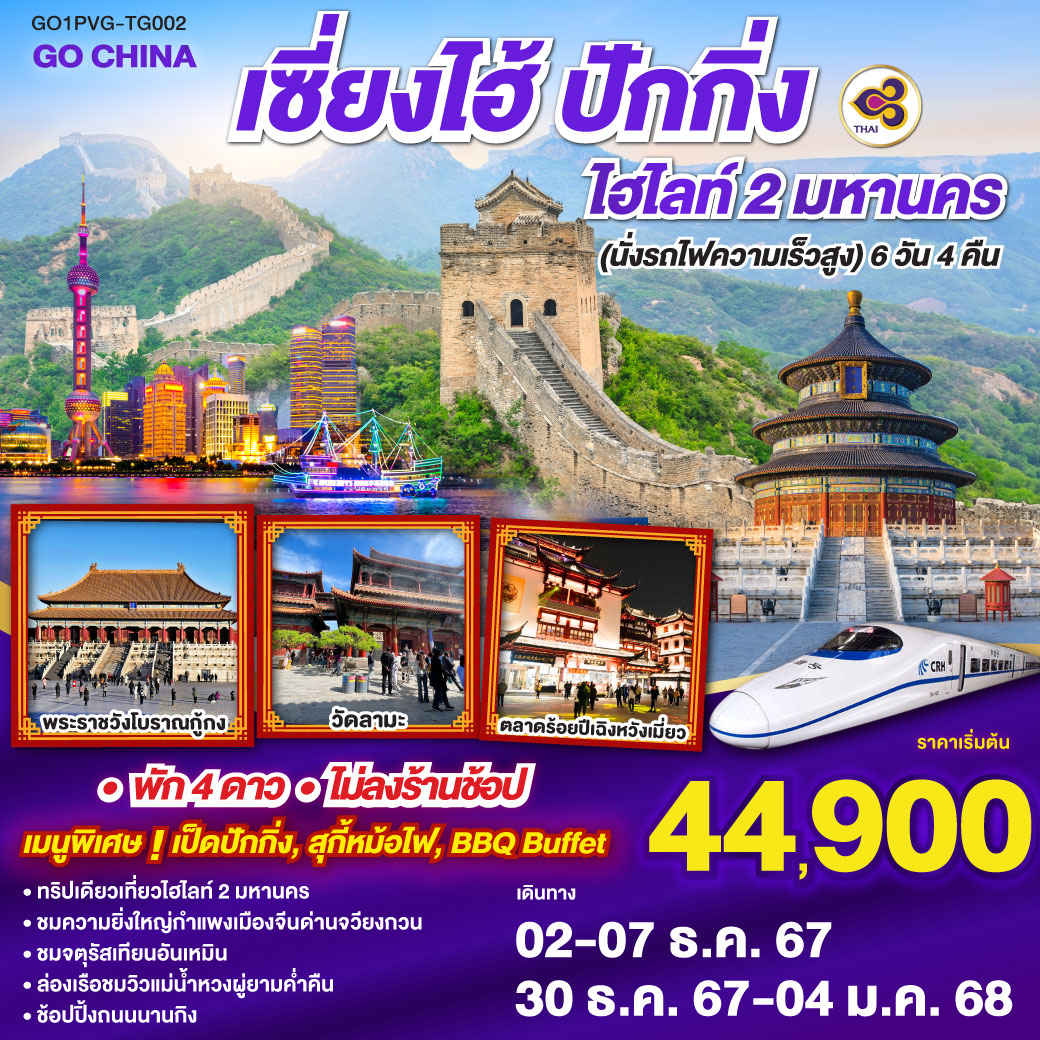 จตุรัสเทียนอันเหมิน – พระราชวังต้องห้ามกู้กง – กำแพงเมืองจีนด่านจวียงกวน - ผ่านชมสนามกีฬารังนก – ถ่ายรูปคู่ Beijing Olympic Tower