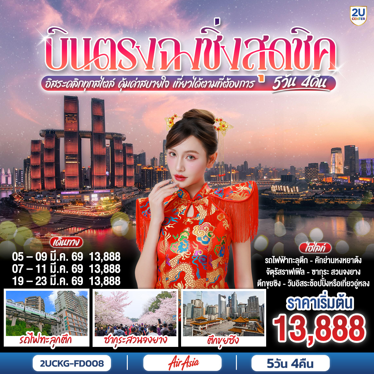 กรุงเทพฯ (สนามบินดอนเมือง) –ฉงชิ่ง (สนามบินฉงชิ่งเจียงเป่ย) (FD556 : 14.45 - 18.50) |
